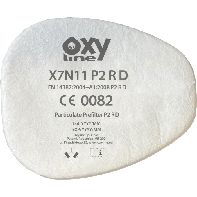 Filtrai P2 R OXY-X7N11 apsaugo nuo kietųjų ir skystųjų dalelių (dulkių). Įdėjus į laikiklius, naudojamas su kitais OXYLINE filtrais užtikrinant maksimalią apsaugą dirbant.